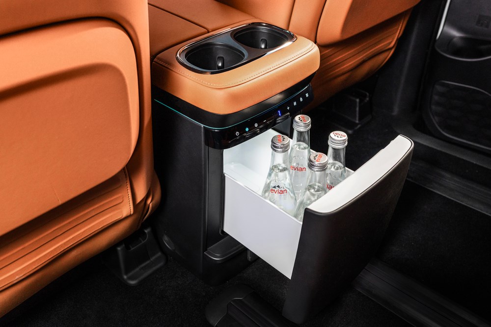 大沙發(fā)有了,當然還少不了大彩電和大冰箱。17.3英寸華為鴻蒙吸頂屏配合雅馬哈全景聲音響,共同營造出“影音殿堂”級的沉浸享受。9.0L大容量三溫四控智能冰箱,支持-6℃至50℃寬域調(diào)節(jié),并具備紫外線殺菌功能,滿足商務場合冰鎮(zhèn)香檳、親子出行溫熱牛奶等多場景需求,配合無風感空調(diào),在舒適出行的同時,滿足全車人的味蕾享受。